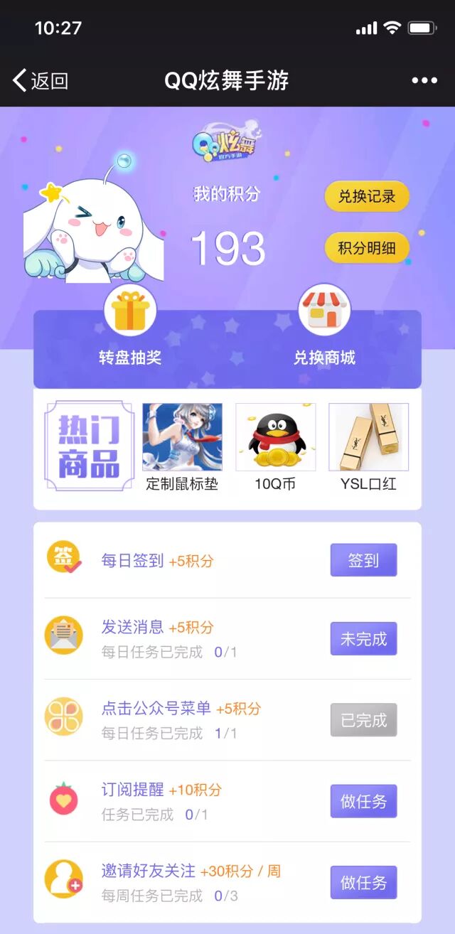 点击公众号菜单【舞者福利-积分任务】进入积分商城,完成任意任务就能在兑换商城内领取相应礼包啦!