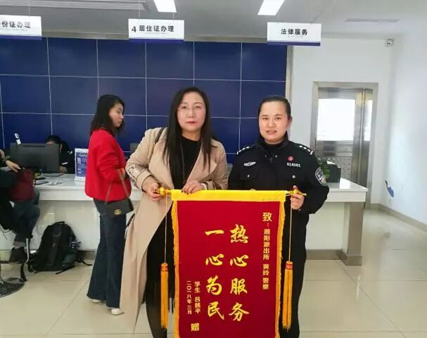 3月26日中午13时许,市民李女士来到芙蓉分局朝阳街派出所户籍室,将“热心服务 一心为民”的锦旗送到该所窗口民警黄玲手上,为感谢民警的热心帮助,加班办理户籍证明,使得其女儿顺利参加艺术类考试。