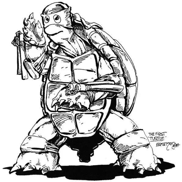 1983年11月的一天,当时还只是两个默默无闻的地下漫画家的彼得•雷尔德与凯文•伊斯曼,在他们一起创办的“幻影工作室”里无聊地涂鸦着,凯文画了一只用后腿站立,前臂缠着双节棍,带着头巾的龟。他拿给彼得看,经过彼得的一番改动,凯文又用铅笔素描了四只,每一只都有不同的武器和不同的姿势,忍者龟的形象就这样跃然纸上。随后他们开始根据这四只龟的形象,勾勒一个英雄龟拯救世界的故事梗概。