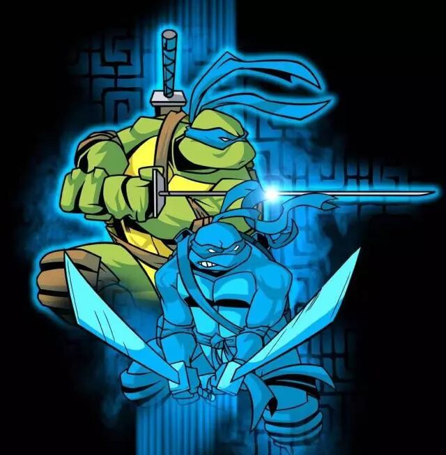 “老大”莱奥纳多·达·芬奇, 蓝色, 使用双武士刀,性格英勇果断、头脑冷静、富有领导才能,负责智慧与统筹。