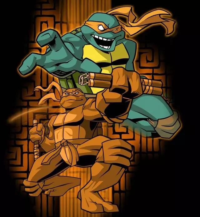 “老三”米开朗基罗 ,橙色,使用双节棍,是个天生的乐天派,富有正义感,喜爱交朋友。