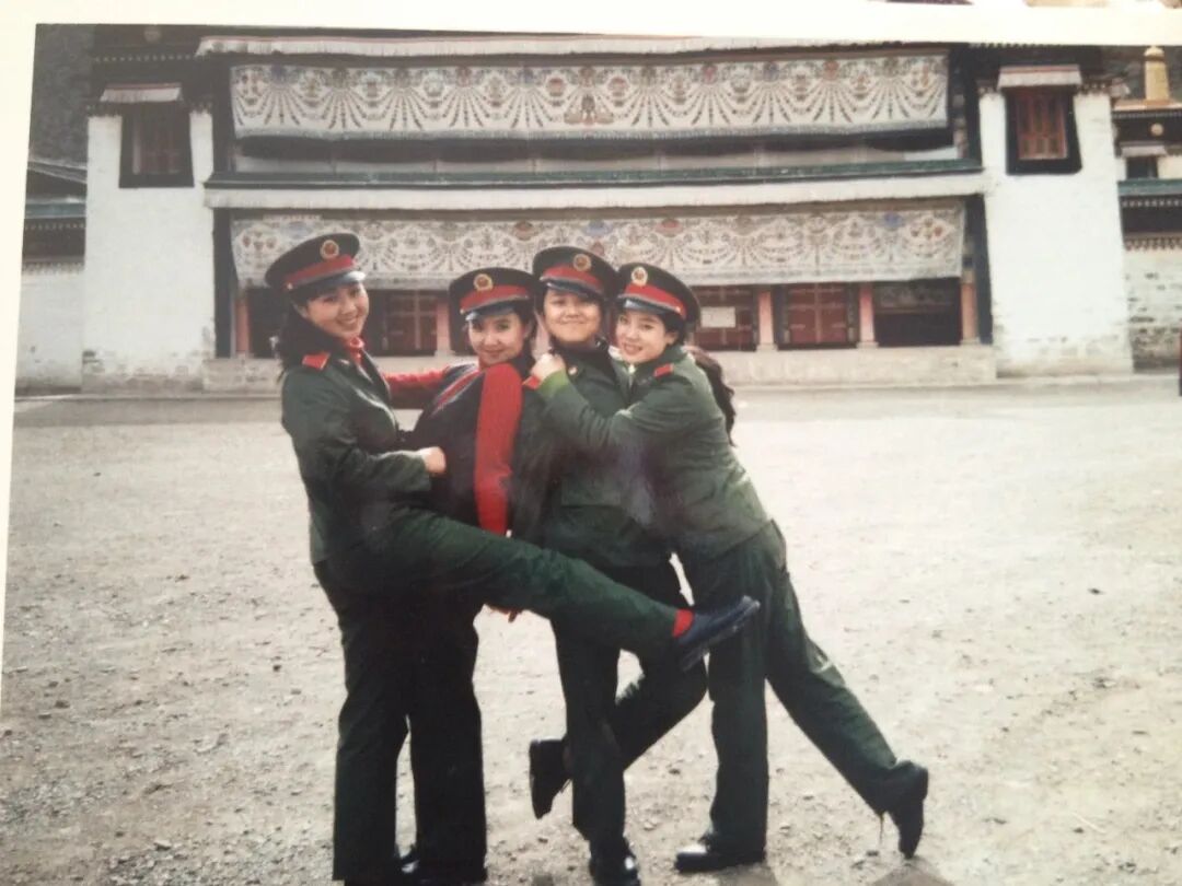 1992年,闫妮(右下)和战友的合影