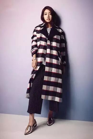 不仅奢侈品牌,朴信惠穿这件Mind Bridge的格纹大衣年轻时髦也不输率性。