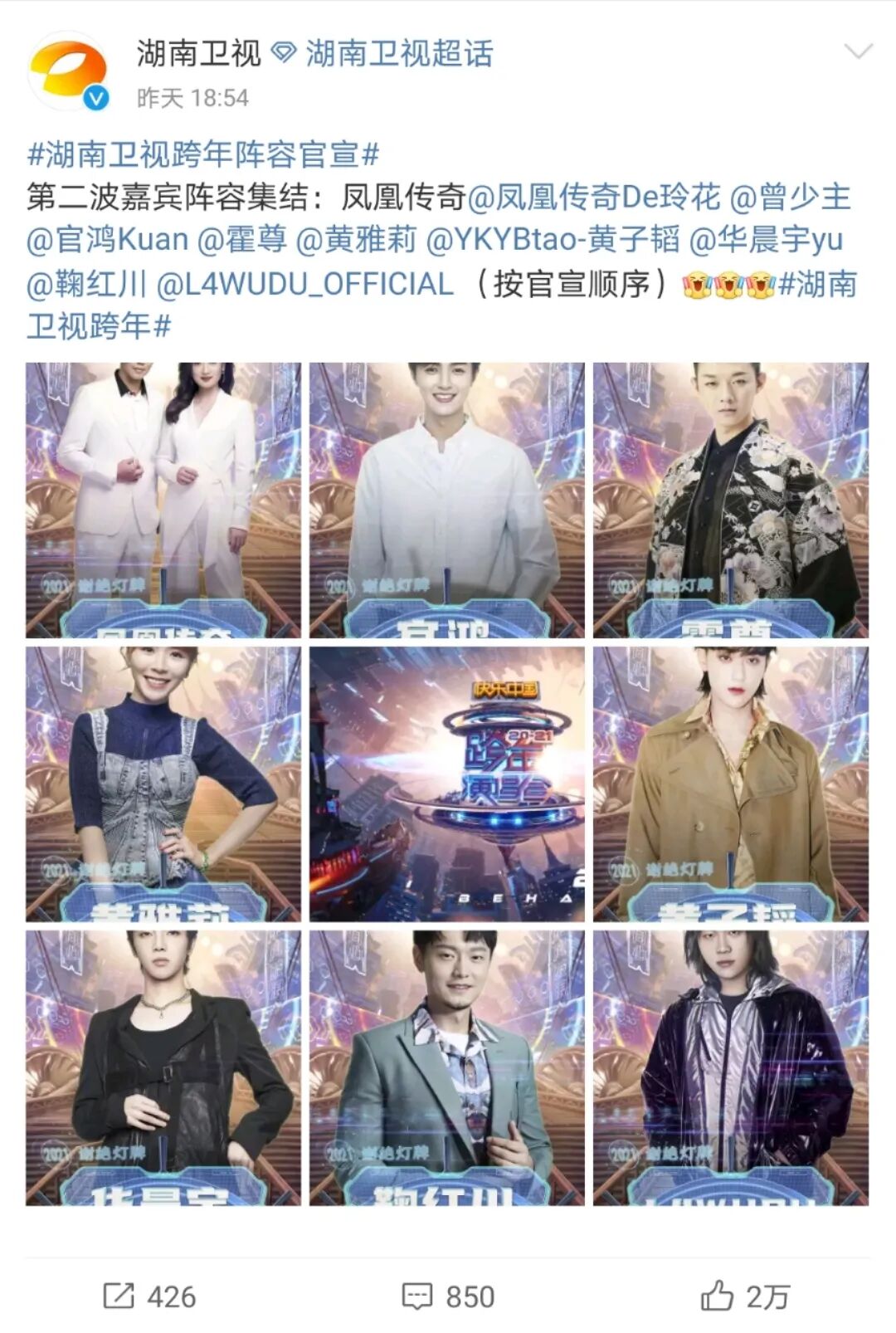 此外,凤凰传奇、官鸿、黄雅莉、霍尊、鞠红川、L4WUDU的加盟也引发了网友的遐想,热曲不断的国民组合、新晋青年演员、国风少年、说唱歌手等在各自领域有着亮眼表现的嘉宾配置又会碰撞出怎样的火花呢?
