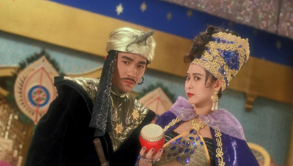 如《东成西就》里,她饰演的恶毒皇后,与梁朝伟同台飚戏时也丝毫不落下风,贱得相当可爱。