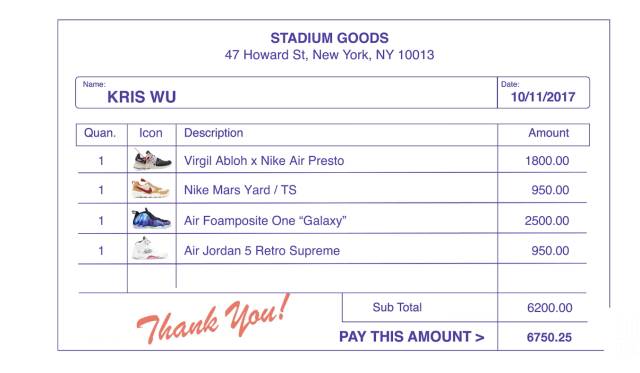 本周吴亦凡登上美国知名球鞋节目《Sneaker Shopping》大谈FAKE椰子,自己还不忘在受邀的纽约知名鞋店Stadium Goods入了四双心爱的球鞋。
