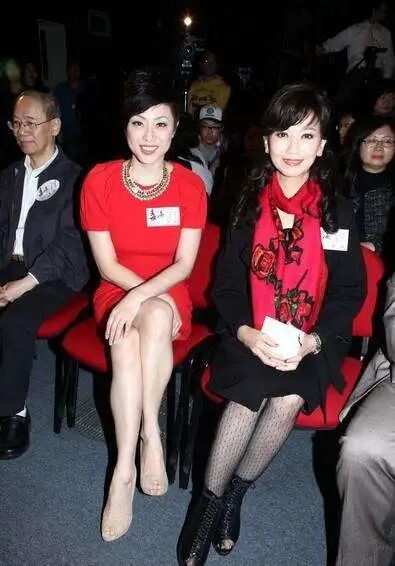 两个人身上穿的都是黑色的衣服,本身这种颜色会比较衬托一个人的肤色,但是朱玲玲的肤色实在是太黑了一些,所以稍微会显得比较的油腻,反而旁边的陈法蓉整个人看起来会比较的年轻,因为她的肤色确实看起来会比较的细腻。