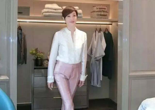 虽然说她的头发比较短,但是感觉整个人的精神状态看起来就比较有年轻人的气息,上半身穿的是一件白色的衣服,这件衣服的质地看起来也是特别的光滑,下面搭配了一条粉红色的裤子,这条裤子的颜色还是暴露了她的少女心。