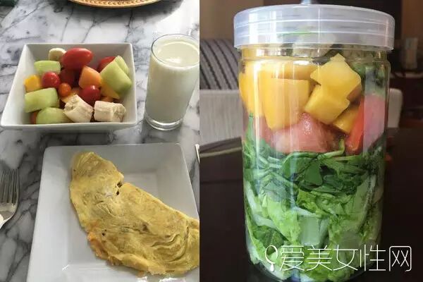 关于吃,尽量保证充足营养素,主食薄饼、蛋白质牛奶、蔬果一个都不少。