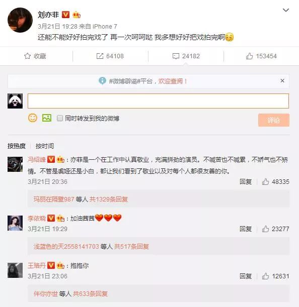 一向好脾气的刘亦菲这次似乎也怒了。发文称:还能不能好好拍完戏了,再一次呵呵哒。冯绍峰王珞丹等好友力挺天仙。