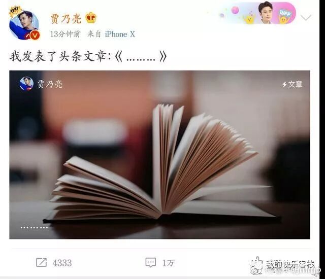 满天绯闻李小璐的老公贾乃亮终于在微博发声了!不过并没有我们意料那样帮李小璐求大家放过。而是发了一个省略号和一本书。让人看起来像沉重的压力要撑不住了.......