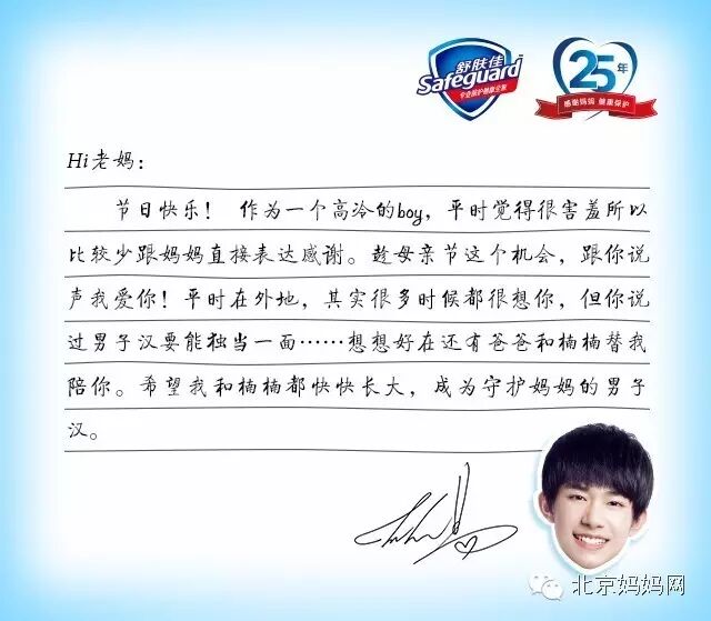 当红少年偶像TFBOYS暖心告白妈妈,