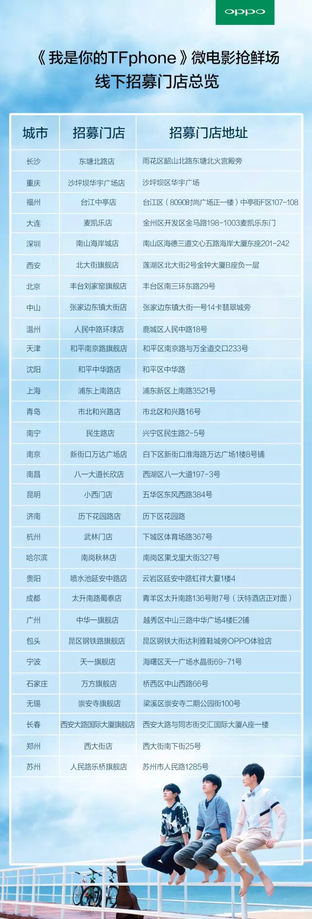 一份来自TFBOYS的元气大礼包,点击开启! OPPO社区 内地男星 2016-05-05 11:03:08 188 创作不易,用心坚持,欢迎请BaGua喝几杯爱心咖啡!打赏并支持本文 打赏并删除本文 就在刚刚过去的“鲜气自拍”活动中,有3位元气少年携OPPO R9踊跃参加,一举登上鲜气自拍头条,不同场景、不同表情,都能拍出“鲜气满满”的自拍。他们,就是2016年OPPO新晋代言人TFBOYS!今天,他们也带着默契好拍档OPPO R9为你送来了一份元气大礼包——《我是你的TFphone》微电影抢鲜场粉丝招募开启你所期待的《我是你的TFphone》终于要来了!不必等5月17日腾讯首播,元气少年TFBOYS发来邀请,和你相约《我是你的TFphone》微电影抢鲜场活动:抢鲜观看《我是你的TFphone》微电影全集见证R9 TFBOYS定制版发布参与精彩的游戏互动,赢惊喜礼品这份诚意十足的元气大礼——让你一次享受观影、见证定制机发布、赢精彩好礼三重VIP式粉丝礼遇!心动了?马上报名!活动信息5月15日(周日) 15:00全国30城电影院,《我是你的TFphone》与你不见不散报名时间即日起至5月11日23:59线上报名方式独家剧照在等你!戳下方[阅读原文],或长按下图识别二维码马上登入报名页面,填写资料即可完成报名。名单筛选结果将以报名结束后电话/短信通知为准。报名完成后,更能获得独家剧照礼包!线下报名方式抽票大行动!根据下图指引,到指定OPPO体验店和TFBOYS人形立牌合影,并配话题#充电5分钟元气2小时#发送微博/朋友圈,即能获得抽票机会。一旦抽中,门票马上带回家!门票已经就绪,与其光看海报猜剧情,不如赶紧报名——下周日,《我是你的TFphone》微电影抢鲜场,更多惊喜和你相约!重要事情说三遍:↓ 戳【阅读原文】马上报名! ↓ 戳【阅读原文】马上报名!↓ 戳【阅读原文】马上报名! 创作不易,用心坚持,欢迎请BaGua喝几杯爱心咖啡!打赏并支持本文 打赏并删除本文 感谢您的支持鼓励,我会继续努力的!文章地址:用户邮箱:打赏金额:USDT 请输入数字点击”去打赏“,即可进行打赏支持本文章哦 tfboys About the Author OPPO社区 功能介绍:丰富资源、趣味活动、线下party,尽在OPPO社区! Related Posts 一份来自TFBOYS的元气大礼包,点击开启! 2016-05-05 11:03:08 发表评论