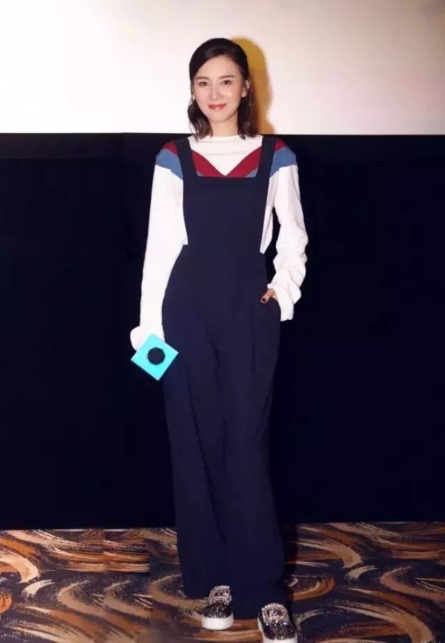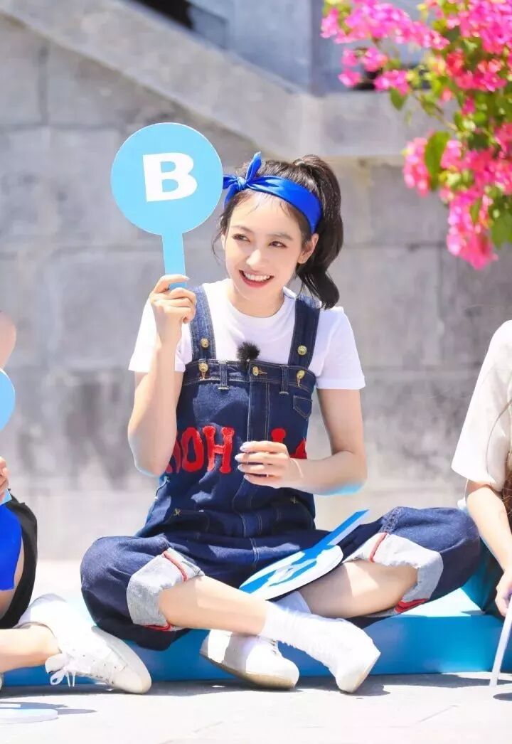 宋茜一件宽松款的背带裤内搭简约的白Tee,梳起马尾青春活力。