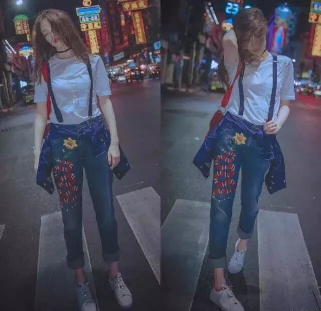 如果长度可以,像倪妮这样把裤脚挽起,显瘦显高。