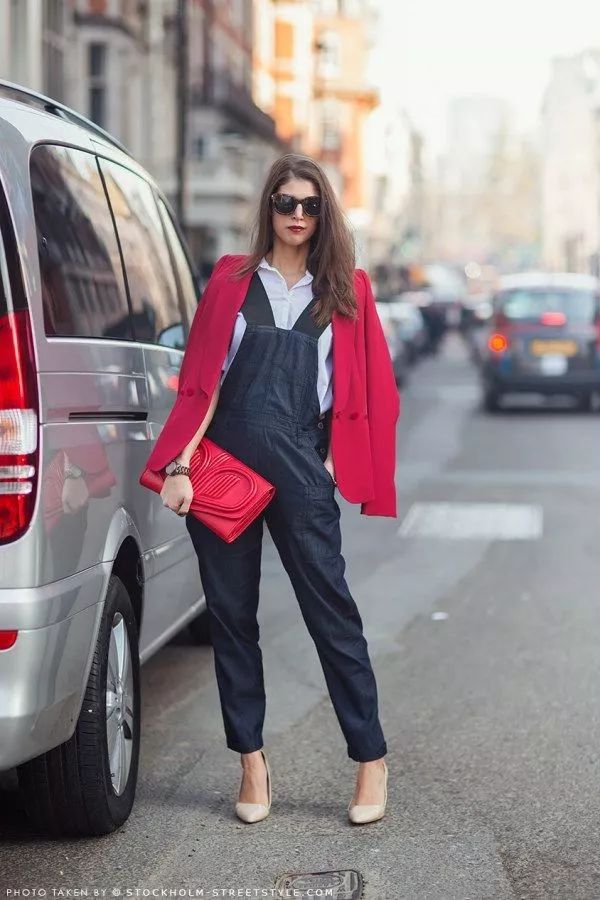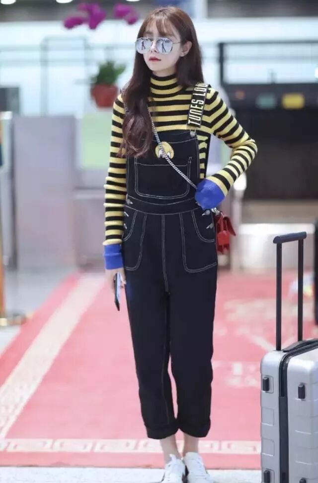 卫衣/毛衣+背带裤的组合也很出彩,选择拼接或是亮色更抢眼哦。