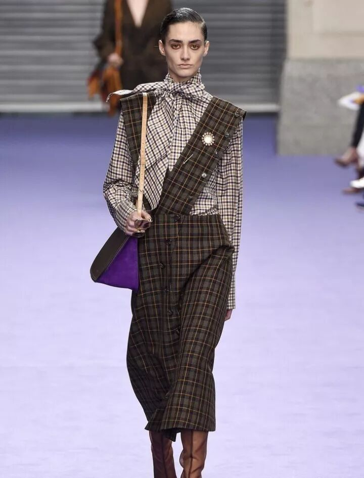 说了八百遍的格纹不介意再说一遍,格纹背带裙工装的优雅感,好像回到了70年代好莱坞的老电影里,还可以配上一顶贝雷帽。