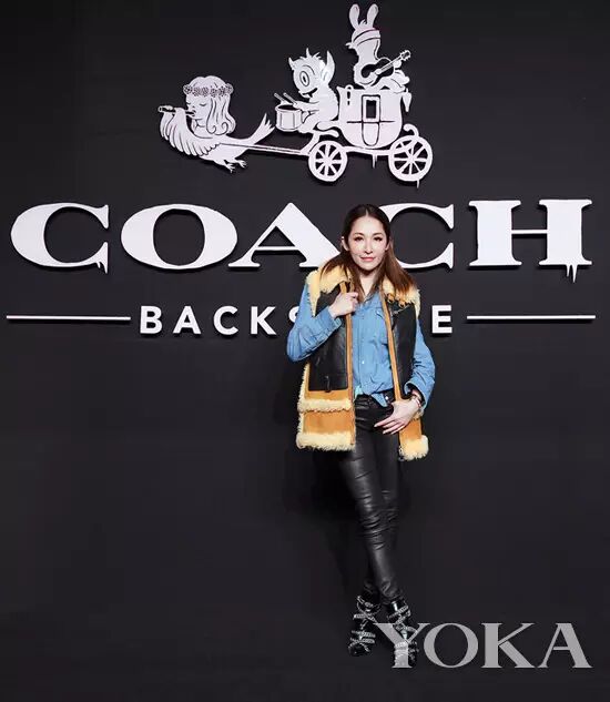 潇洒小姐萧亚轩身穿Coach 2015秋冬系列皮毛马甲的她简单的配以牛仔衬衫+皮裤。