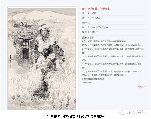 昨日,北京保利2016春季拍卖会在京举槌。在下午的“中国当代水墨”专场中,央视主持人朱军的水墨画《牧羊女》以70万元起拍,经过1分多钟、十余轮竞价,该拍品最终以130万元落槌(不含佣金)。☟就酱紫☟介绍文字是这么写的(来自Ctrl+C and Ctrl+V):《牧羊女》长177cm、宽95cm,曾亮相“杜蘅情怀·朱军个人画展”,估价达80-100万元。该画作以牧羊女立像为主体,几只羊环绕牧羊女周围。画作题识为“朱军画”,钤印包括“朱军”、“思潭斋”、“用艺术点亮生命用情感温暖人心”。 请原谅我的肤浅,我是真看不出它究竟值不值这么多钱,在娱乐圈会演戏会唱歌根本都算不上才艺,不稀罕。但如果这能拿出点儿什么不一样的,比如:某某明星的书法比一些书法大师的还值钱,某某明星的画堪比专业绘画大家……你是否真的会多看两眼?特别是那些有着双重甚至多重身份的明星。 早前苍老师的一幅字拍出了60万元的天价,这一现象更是显示出当下明星字画拍卖市场的火热,虽有质疑之声,但市场的火热是不容质疑的。那么问题来了,明星字画究竟贵在哪儿?1道德价值层面符合社会需要明星作品抛开其明星身份以后,单就其作品而言,是否可以看到了社会缺失的一种精神,例如一种中国传统的、质朴的美德。对这一类作品加以关注和宣传能够借助公共艺术的平台,呼唤这样一种精神。2收藏家认可其长远价值明星本身的艺术修养也是某些藏家所关注的。著名画家刘思东认为,明星书画目前来看应当还是光环效应大于艺术水准,但这些“多才多艺”的人物,如果在书画之路上走得够深入,下大力气花大功夫,也不排除有出类拔萃的人冒出来。还有一种情况是藏家往往以崇拜的心理看待它们,作品的价值就是明星本身,与他们的名气息息相关,如果过气的明星,肯定就不值钱了。3炒作需要明星作品拍卖不一定都会走拍卖行程序,有些甚至是在商业活动的现场进行的拍卖活动(例如苍井空),这就是市场行为,这类拍卖买家身份不固定,可能存在赞助商雇人抬高拍卖价格之嫌,或者是明星“粉丝”砸钱捧场。当代著名书法家羿耿庵对此类现象有自己的观点:“明星字画卖出高价是不正常的又是正常的。从艺术本身来说,其艺术性确实还没有达到那么高的价值。但从市场角度来看,就是正常的社会现象,因为有需求就会有市场,关键在于藏家本身。”小编就为大家盘点一下,那些年他们的“墨宝”主持人们名导们歌手演员们