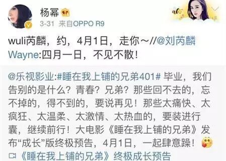 要说大幂幂在微博不活跃吗?不是啊,人家微博粉丝过六千万了,庆祝庆祝,刘芮麟的新电影,宣传宣传~