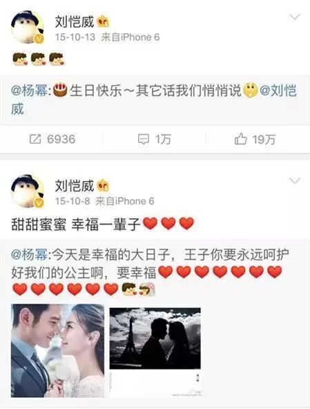 当真心疼刘叔叔啊,因为他跟大幂幂的离婚传言简直比大姨妈还要来的频繁,几乎每天都在被离婚,而且内容越来越精彩,脑洞大开堪称八点档的狗血大剧。这两人离没离婚,或许只有他们自己和民政局知道,不过,网友们的猜测也不是没有根据的,光看两个人在微博上的互动,确实不多。