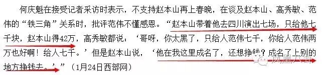 前两年,给赵本山写过多部小品的编剧何庆魁曾经爆料,早年范伟跟赵本山到处演出,拿了42万酬劳,结果只给范伟7000。