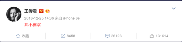 一大批迷弟迷妹中突兀的一个人就是王传君,他光明正大在自己微博中表示“我不喜欢”。