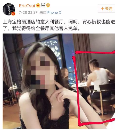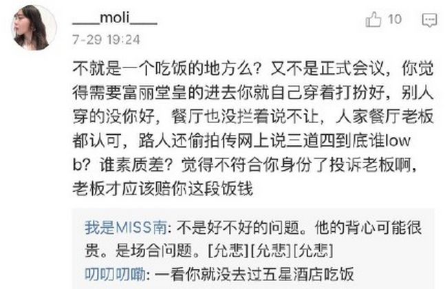 某十八线网红发微博吐槽:“上海宝格利酒店的意大利餐厅,呵呵,背心裤衩也能进了,我觉得得给全餐厅其他客人免单”并偷拍了那个男的背影照。评论很多人都认可她,觉得衣装不得体是对饭店的不尊重。但也有网友表示,人家只是吃了饭餐厅老板也没拦着不让进,吃饭吃出优越感了?对此你怎么看?
