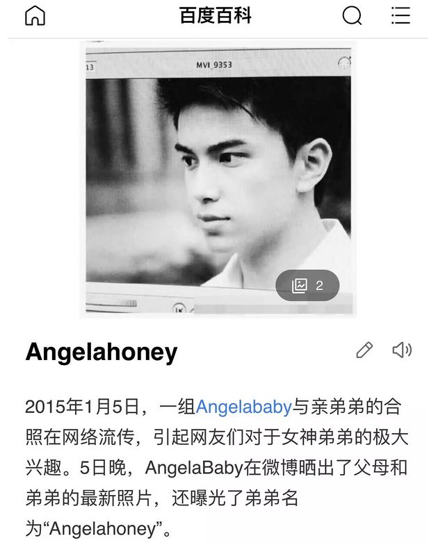 有网友发现Angelababy亲弟弟的名字叫Angelahoney,觉得很好笑,还调侃如果再有一个妹妹是不是叫angelasweetheart 或者 angeladarling,娱乐圈明星家族名字套公式的还有很多,比如范冰冰弟弟叫范丞丞,堂妹叫范朵朵。