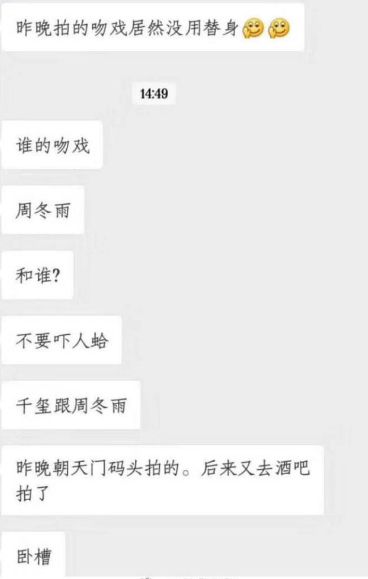 最近易烊千玺跟周冬雨在拍一部电影叫《少年的你如此美丽》,有私生饭拍到两人有吻戏的镜头,还有互相调戏的情节,引起热议,有看过原著的网友表示小说中共有8次吻戏,1次床戏,不知道电影中会呈现多少,但有粉丝辟谣说这是一场校园霸凌的戏,流出的路透非常糊,已经涉及到剧透。其实,真的拍吻戏也没什么,演员嘛,这都是工作而已,不需要这么玻璃心。