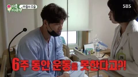 护士对金钟国说:「6周内不能运动,不能拎超过10公斤的东西。」他一听到也非常的担心。经纪人更表示:「结果这都是因为运动,最终还动了手术。」金钟国也说:「听说运动选手很常患这个病。」(但他是歌手啊XDDD)