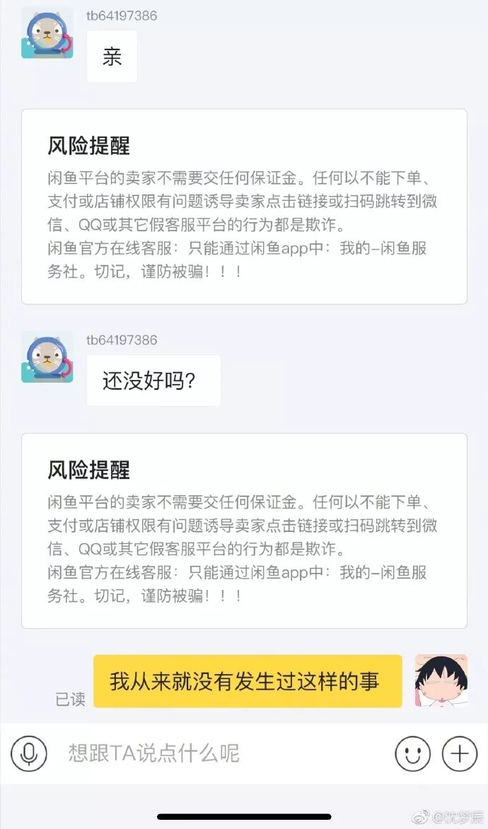 昨天闲鱼也回应了此事,表明这种情况平台是不会进行赔付的,所以这次的事情也只能当做一个教训了。