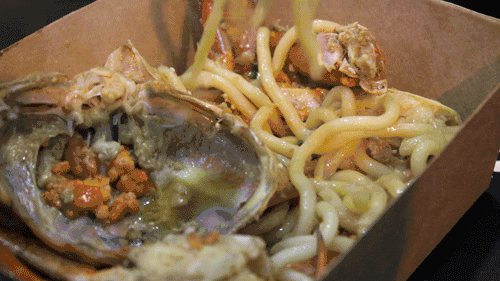 蟹黄慵懒地撒落在乌冬面中,拌着蟹膏鲜浓的汁水,感觉口中跳起了广场舞!