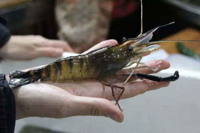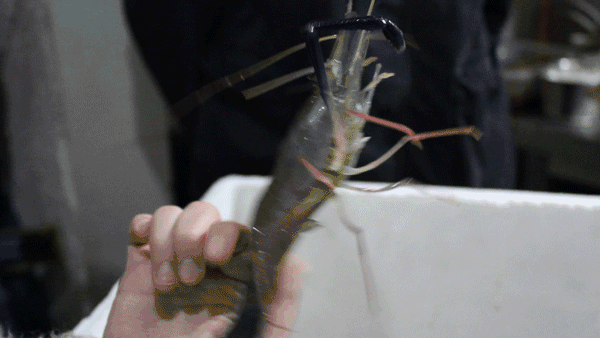 新不新鲜看颜色!虾壳发亮,颜色青绿。旋转一圈还能看到虾肉质坚实,一点都没“虾”搞!