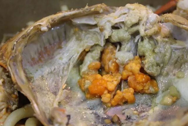 真的超大一份,料给的也很足。湖蟹都是满黄的,浸泡在酱汁儿的味道还挺浓郁的,虽然这完全是三四个人的量,但我觉得自己能嗑掉一整盆!