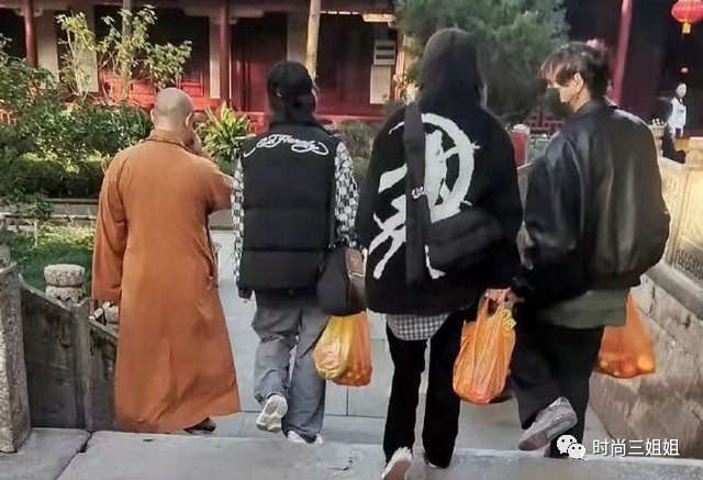 在这里我们要重点介绍的叠穿法是长短袖结合,刘诗诗跟杨幂去普陀山游玩的时候,身上这一套造型就是采用了这个搭配方法。