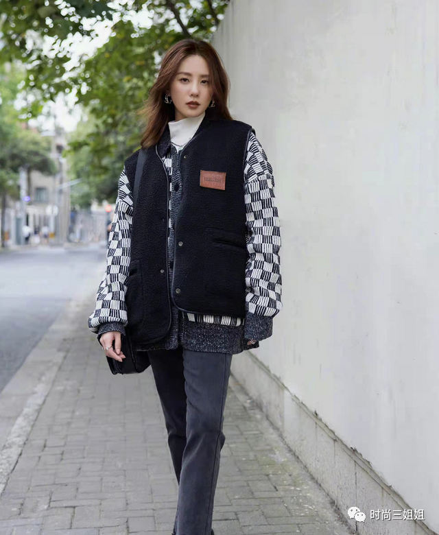 而且也正因为内外长短不同,可以更好的让造型呈现出多元素展现,像刘诗诗内搭的格纹设计就显得非常的亮眼,可以让整个造型看上去更有时尚感。