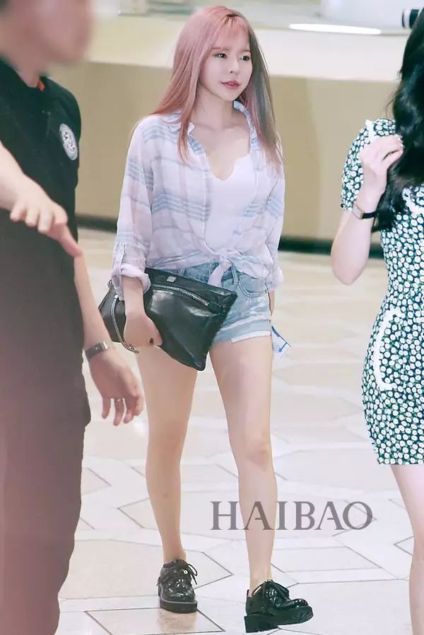 sunny和泰妍虽是小个子但很会扬长避短,热裤、短裤、甚至“下衣失踪”来拉长腿部比例。显得高挑又可爱。