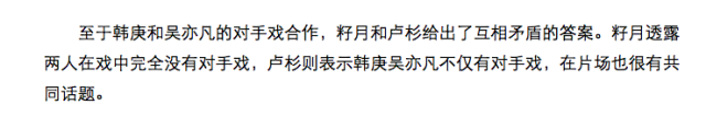 女主演卢杉曾在某次采访中无意透露吴亦凡和韩庚在片场拍戏的互动,这应该是可以证明韩庚的唐小天和吴亦凡的夏木是有对手戏的。