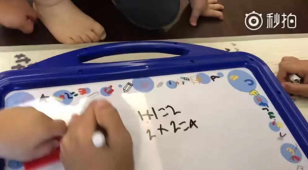 紧接着kimi给弟弟加大了难度,问弟弟:那二乘二等于多少?并且一边说一边写了下来。没想到这个题依然没有难住KK,脱口而出:4!