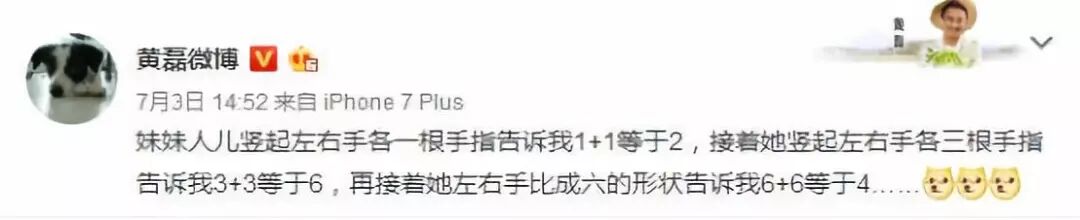 无独有偶,当天,黄磊也发微博吐槽自己的小女儿,而内容竟然也是关于学数字的。