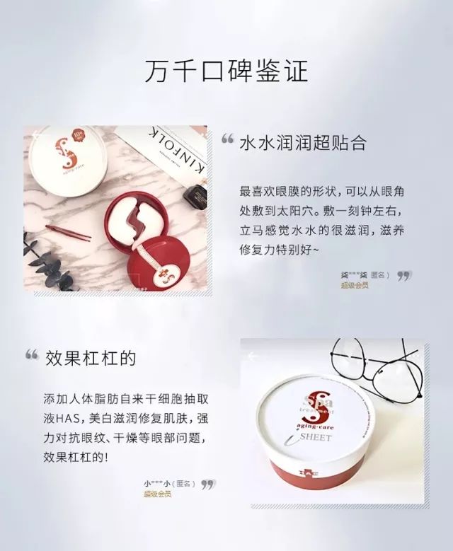 要改变这种状况,除了每天早晚用眼霜以外,眼膜贴也是必不可少的。脸部的皮肤两天不敷面膜会干到卡粉,眼周肌肤是直接就来一道皱纹啊!就问你怕不怕!