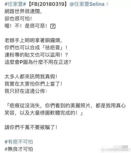 宣称祛疤膏让Selina多年伤疤痊愈