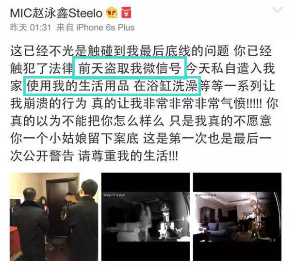一位女粉丝,先是盗取了某男团成员赵泳鑫的微信,然后又私自潜入赵泳鑫家,去!洗!澡!