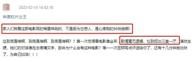 令人出戏的台词也让人大为失望,观众直呼“像在念疼痛文字”。