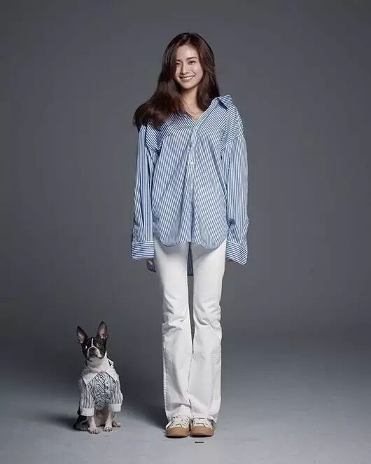 공개된 사진 속에는 자신의 반려견 고무와 스트라이프 셔츠를 맞춰 입은 나나가 포즈를 취하고 있는 모습 등이 담겨 있다. 사진 속에서 반려견에 대한 애정이 물씬 느껴진다.