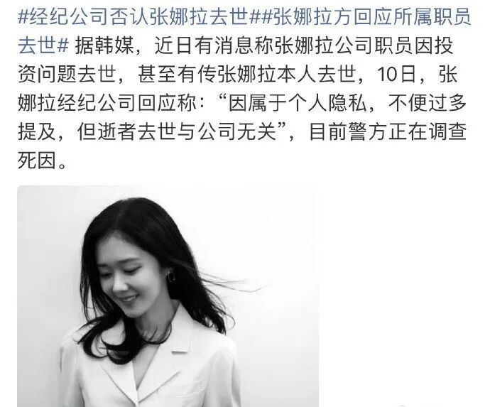 翻遍全网也没找到官方消息,倒是看到一堆离谱的“证据”:有人把韩国医院抢救室的照片打码,配文“张娜拉最后时刻”;有人编小作文说“她因长期抑郁自杀”;更绝的是,某营销号连“遗体告别仪式时间”都写好了,底下还跟着一群“一路走好”的评论。