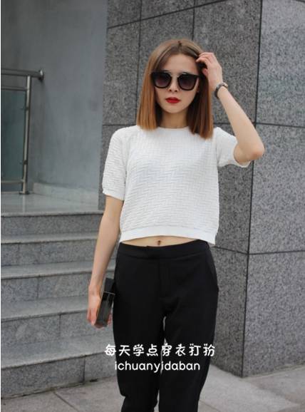 短款上衣搭配牛仔裤