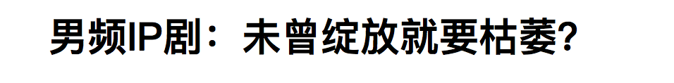 巧合的是,里面有一大部分都是由男频文改编的IP(顾名思义,指的是用户多为男性的文章)。相比播放量动辄上亿的大女主戏,很多人都在唱衰——难道男频IP剧注定行不通吗?
