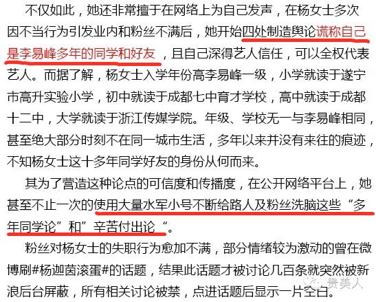 理由是她“对待粉丝过于高冷”还“在片场居然跟李易峰在同一个桌子上吃饭”……